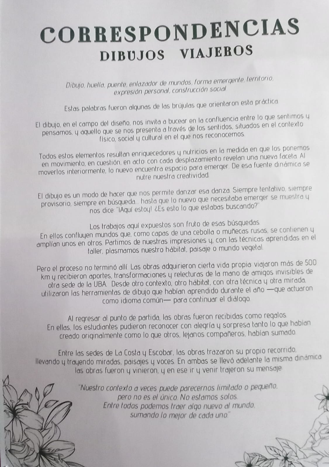 Correspondencias Dibujos Viajeros Dibujos viajeros fue realizada por los y las estudiantes del CBC de las sedes de La Costa y Escobar. Catálogo Digital Descarga PDF Obras EQUIPO DE CÁTEDRA – DIBUJO CBC – CÁTEDRA EX MURGIA HEIB MARIA PAULARODRIGUEZ GESUALDIALEJANDRA ROZADOSSAUSER VICENTE Autoridades INTENDENTEDr. Juan de Jesús SUB-SECRETARÍA DE CULTURAMartin O’Connor DIRECCIÓN DE CULTURANoelia Mujica DIRECTOR ESPACIO EXPOSITIVOHéctor Cacciabue