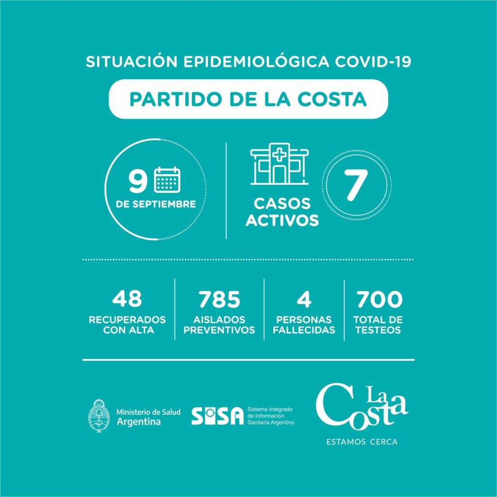 Recordamos que al día de hoy tenemos 7 casos activos en el Partido de La Costa. Si bien las cifras, considerando nuestra cantidad de habitantes de aproximadamente 100 mil costeros y costeras, son auspiciosas, insistimos con el pedido de la responsabilidad individual.