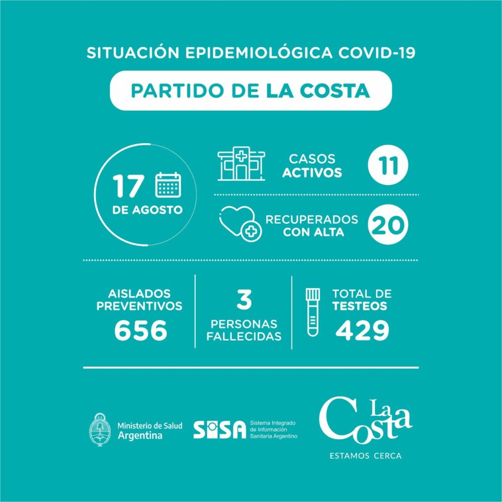 Recordemos que en La Costa tenemos al día de hoy 11 casos activos y 20 vecinos que recibieron el alta médica. Cerca nuestro, los contagios siguen creciendo. Volvemos a apelar a la responsabilidad individual y pedir también que evitemos salir del Partido de La Costa, ya que el virus se expande de manera rápida y somos nosotros los que lo trasladamos.