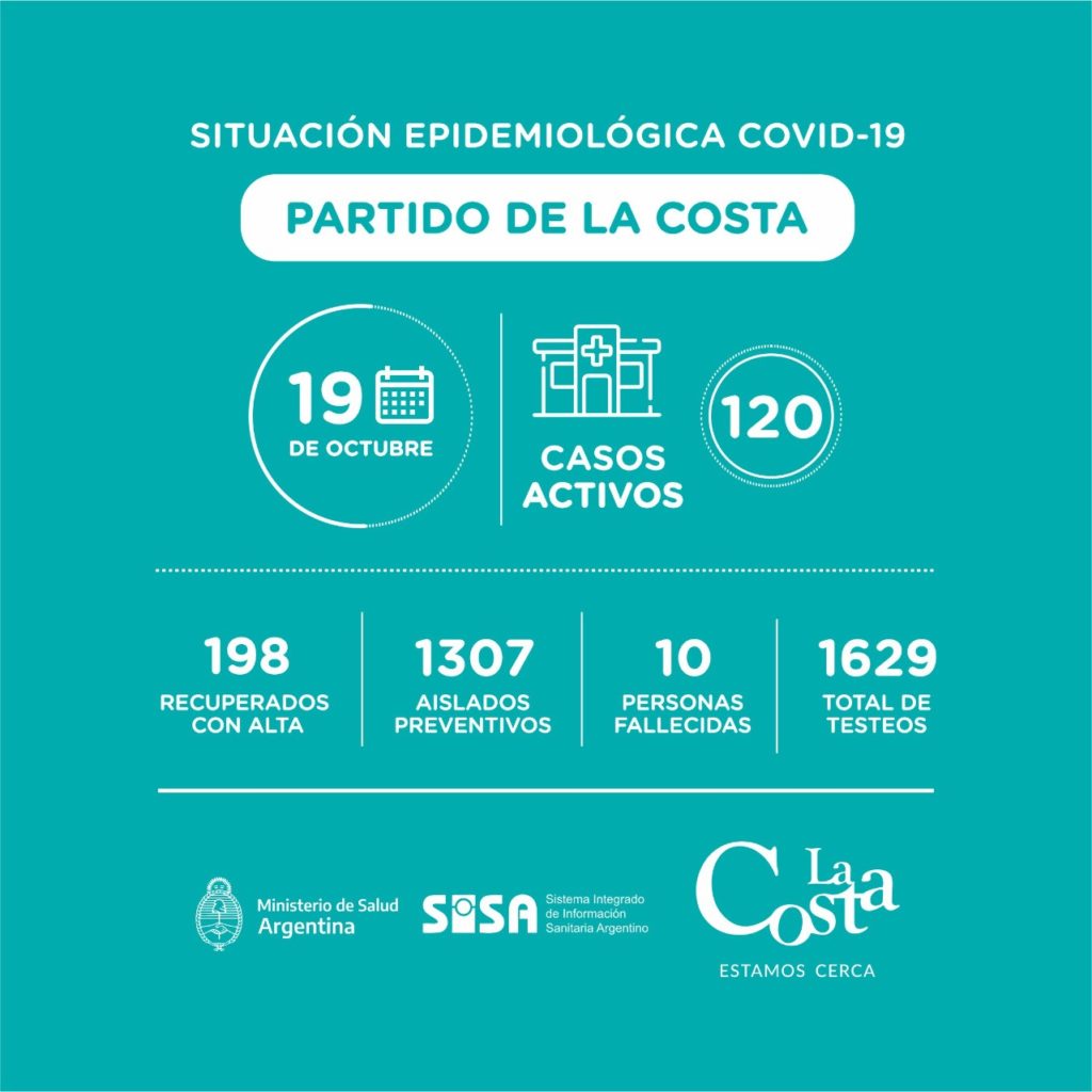 Con las 12 personas que se han recuperado, al día de la fecha tenemos un total de 120 casos activos entre los 100.000 habitantes del Partido de La Costa.