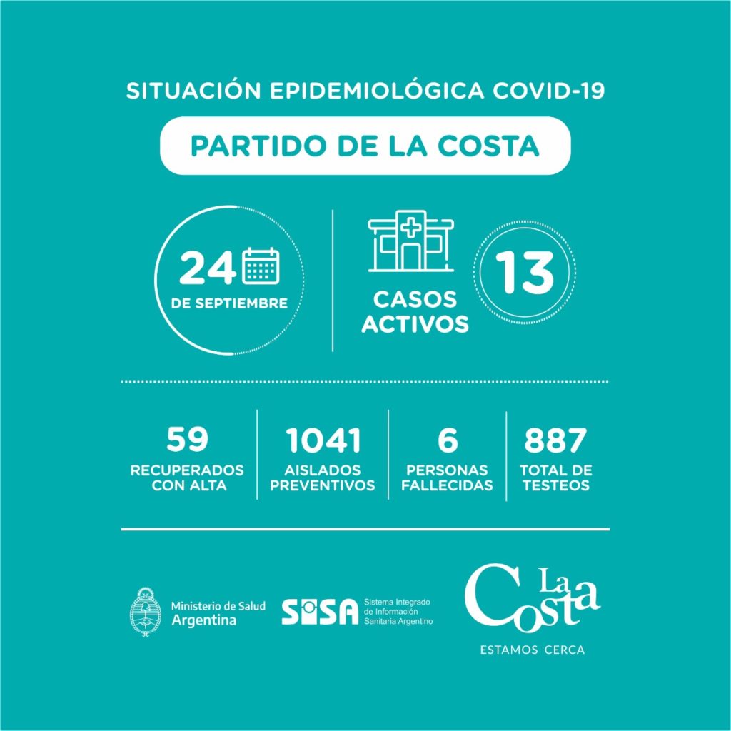 En definitiva, hoy tenemos entonces 13 casos activos entre los 100.000 habitantes del Partido de La Costa, y 59 vecinos y vecinas que ya han recibido el alta médica. De todas maneras, insistimos en el pedido de responsabilidad individual y colectiva.