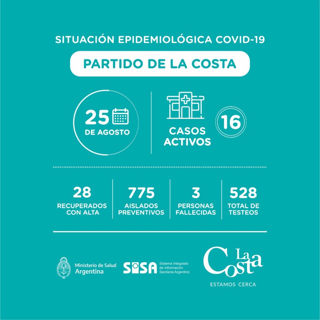 Recordemos entonces que en La Costa tenemos al día de hoy 16 casos activos y 28 vecinos que recibieron el alta médica. Volvemos a apelar a la responsabilidad individual y pedir también que evitemos salir del Partido de La Costa, ya que el virus se expande de manera rápida y somos nosotros los que lo trasladamos.