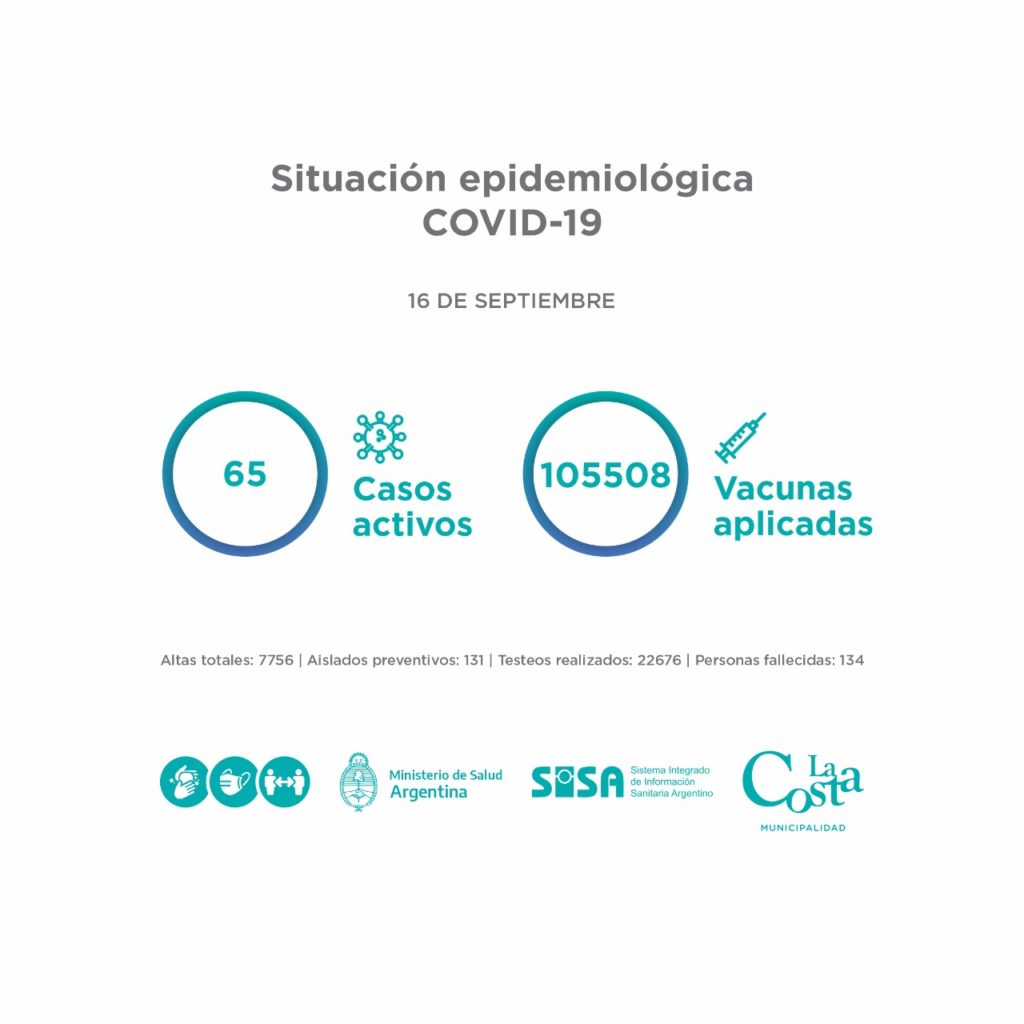 El Comité Epidemiológico informa la situación en el Partido de La Costa al jueves 16 de septiembre: